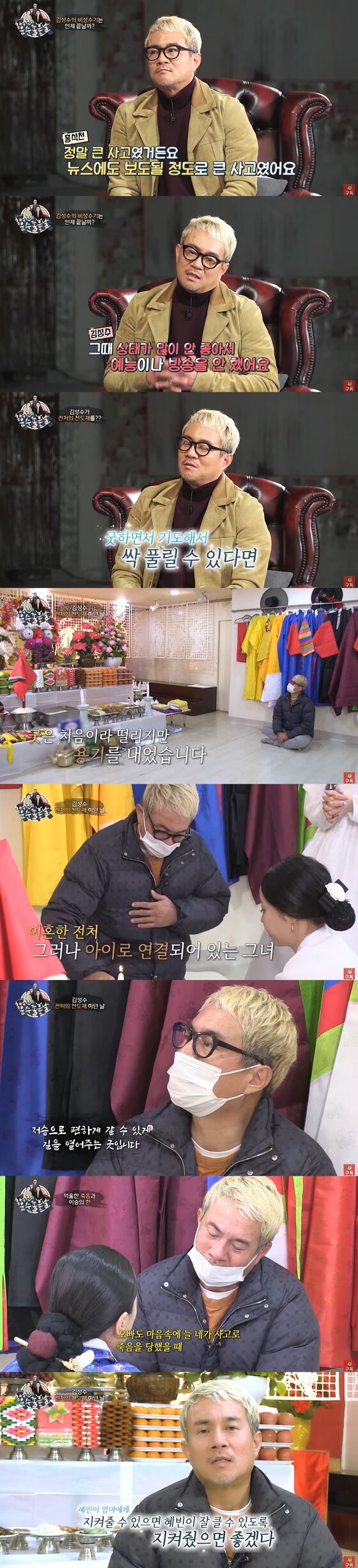 이에 김성수는 전처의 영혼을 달래고, 좋은 곳으로 가길 비는 천도재를 하기로 결심했다. 사고 후 8년 만에 전처를 보내주기 위해 천도재를 연 김성수는 조심스레 술을 올리고 절을 하는 모습을 보였다.