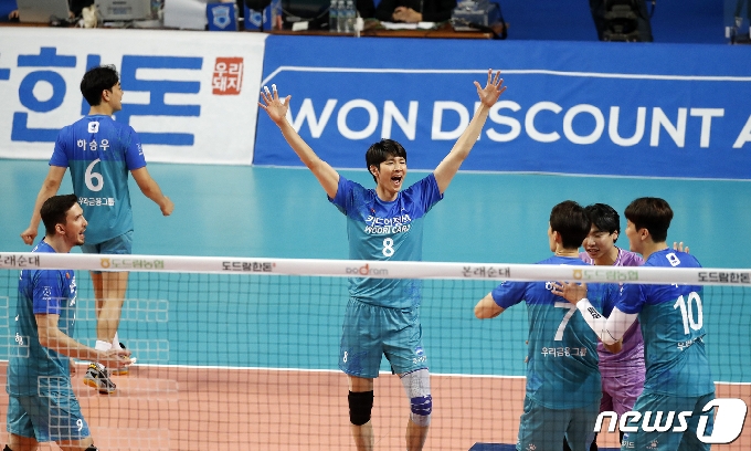 이날 우리카드는 OK금융그룹을 상대로 세트 스코어 3대0으로 승리했다. 2021.3.23/뉴스1