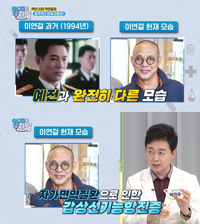 이연걸의 몰라보게 달라진 모습에 박용우 의학박사는 "이연걸 씨의 경우는 신문 보도를 보면 갑상선기능항진증을 앓는 것으로 알려졌는데 자가면역질환으로 인한 것으로 생각된다"고 말했다.